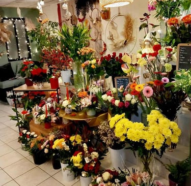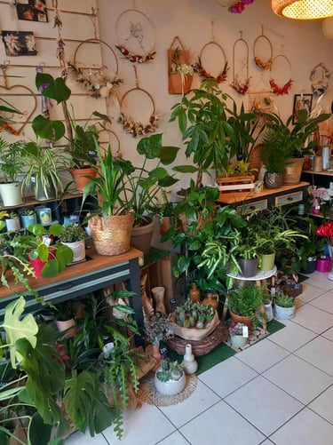 Artisan fleuriste, je suis passionnée par les fleurs et vous découvrirez dans mon atelier, petit mais cosy, tout mon univers floral. Les vitrines s'animent en fonction des saisons, l'intérieur aussi, alors n'hésitez pas à pousser la porte pour le découvrir.