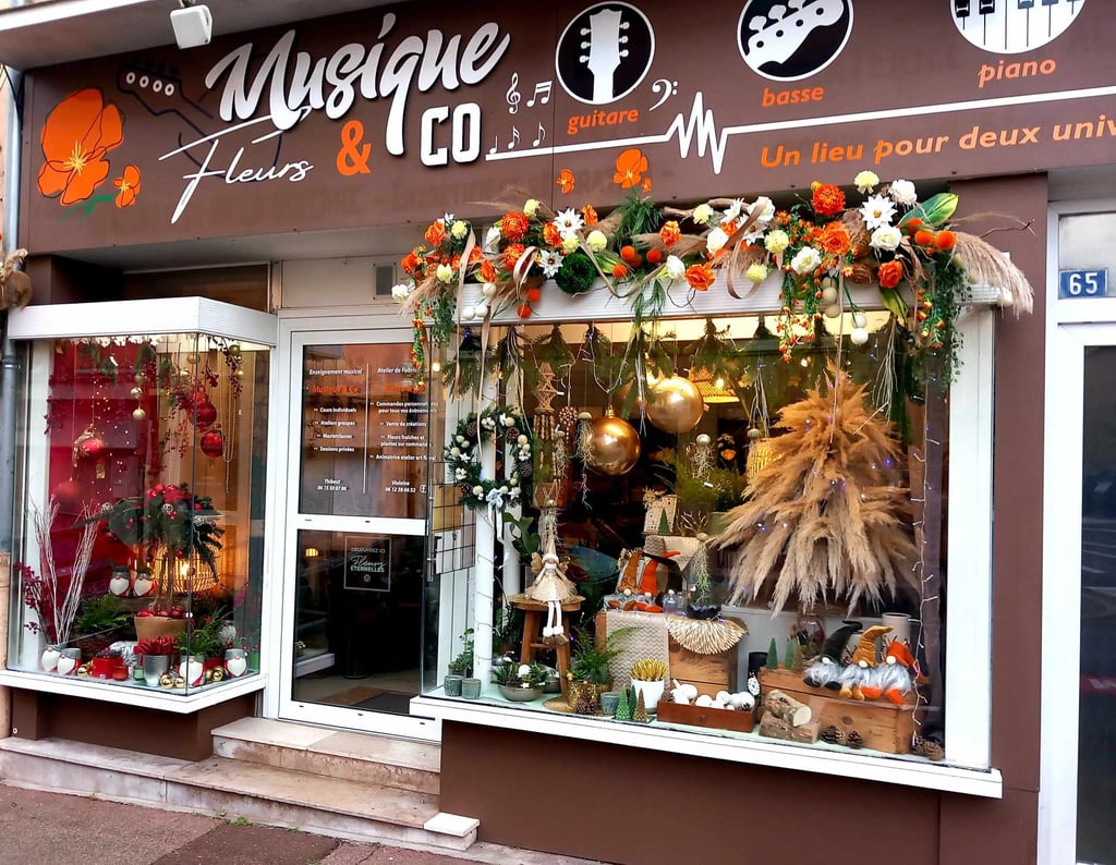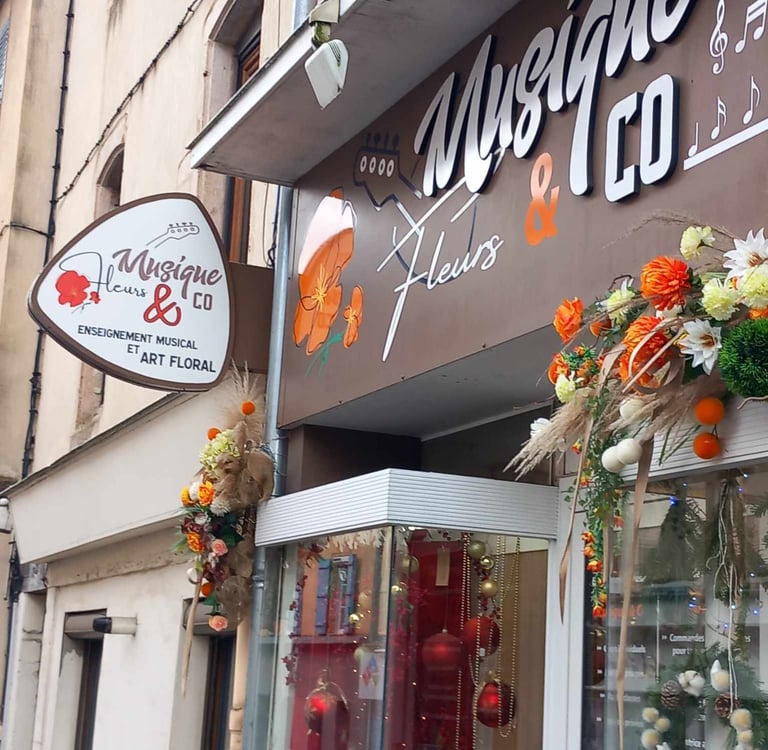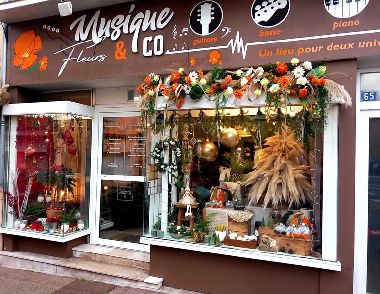 Un lieu pour deux univers créatifs ! Fleurs & Co et Musique & Co au 65 rue Rambuteau à Mâcon.